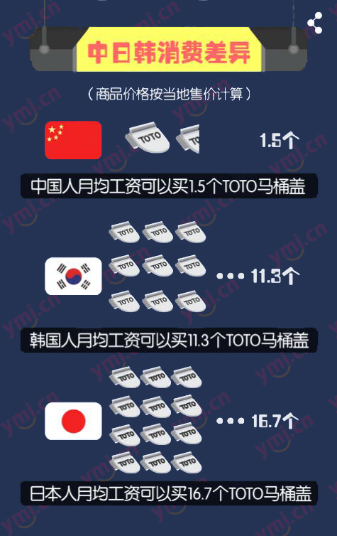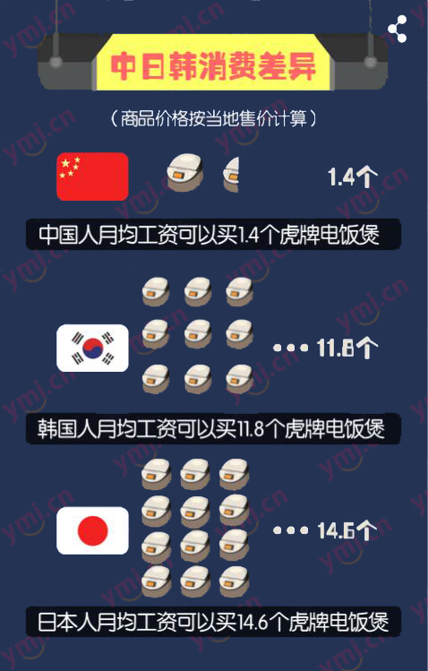 理解了为什么中国人喜欢日淘、韩淘之后,下面咱们再看看一组更让人惊讶的数字吧。结合一下中日韩平均工资,看一下我们和他们的差距到底有多大?
