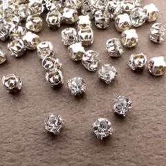 *4g 120個前後* ガラス ラインストーン 台座付 ビジュー 3x2.5mm クリア 縫い付け用 et183
